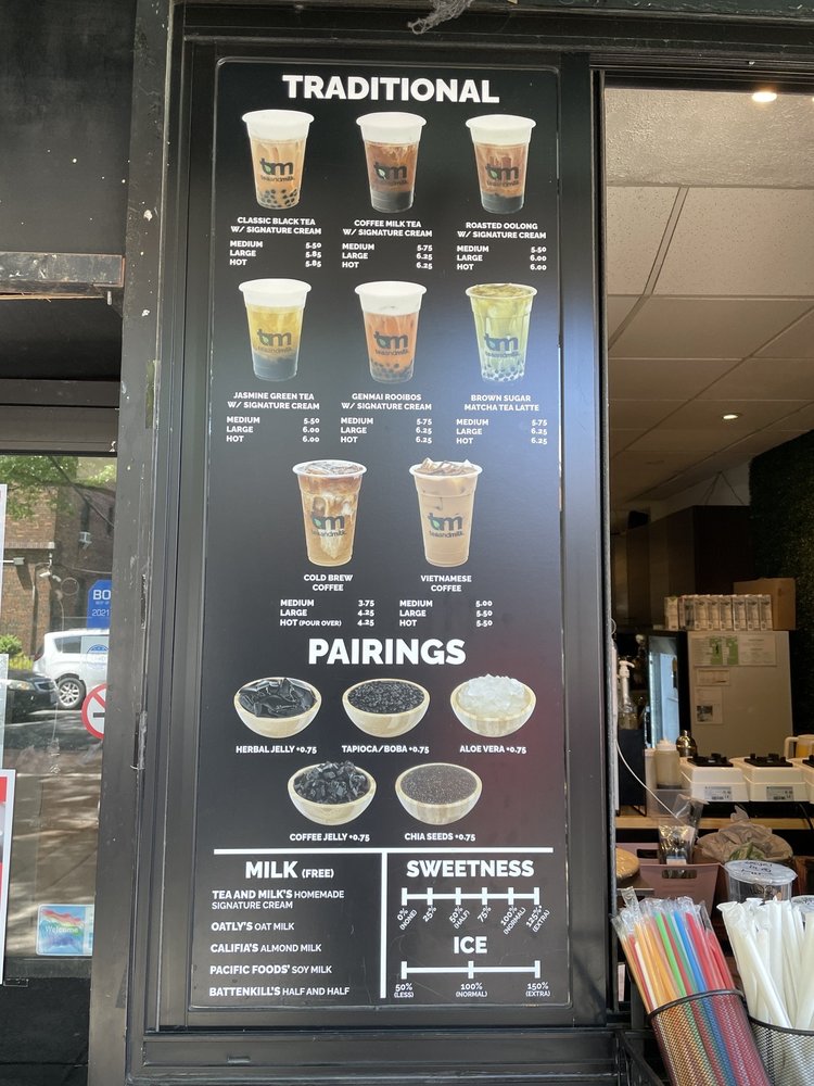 Tea and Milk, a Vietnamese cafe in Astoria, NY, offers a versatile menu with options for everyone, including vegan choices and plastic-free packaging. Their concept teas, like the Bay Ridge Drink and Brown Sugar Earl Grey Milk Tea, blend unique flavors for a creamy and indulgent experience. The Vietnamese sandwiches, such as the BBQ Pork Banh Mi, are savory delights that showcase the perfect blend of flavors and textures. Customers rave about the signature cream in their drinks, adding richness and depth to every sip. While the lack of indoor seating may be a downside for some, the friendly service and refreshing drinks make Tea and Milk a must-visit spot for bubble tea and banh mi lovers alike. With a focus on fresh ingredients and a variety of options to choose from, this cafe is ideal for those looking for a quick grab-and-go option or a leisurely outdoor dining experience.
